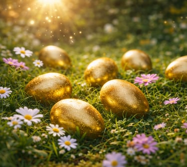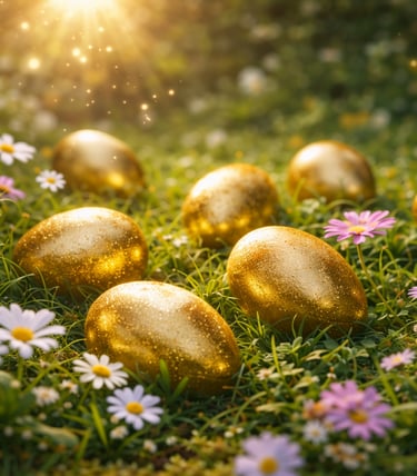 Hide one golden egg per child around your yard or party space. Tuck them into flowers, behind rocks, or along garden paths.