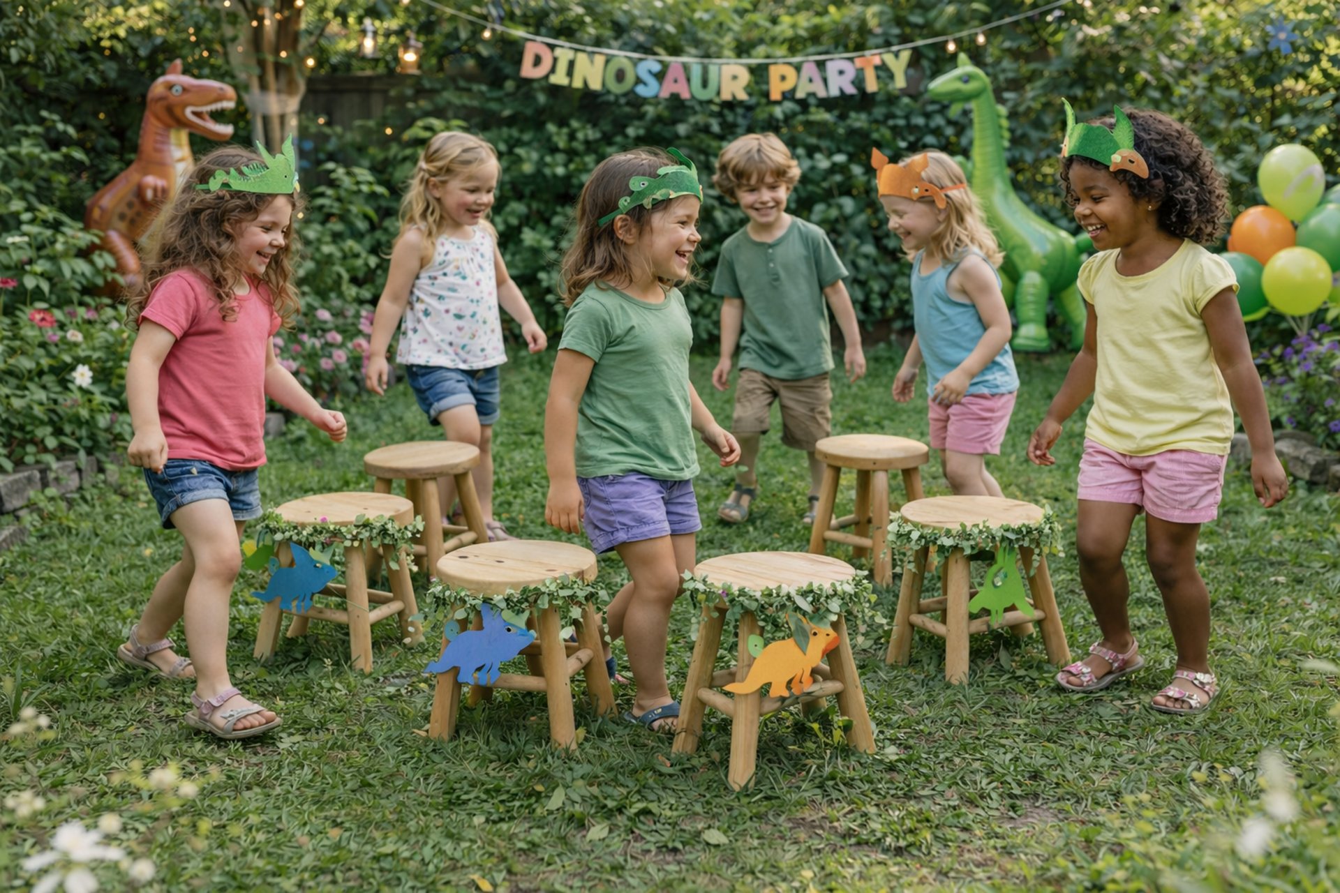 A high energy dinosaur stomp game where kids race to find a spot before the T-Rex roar stops.