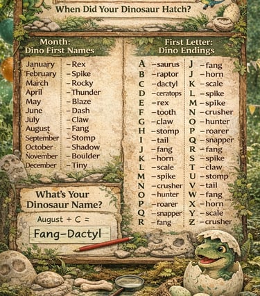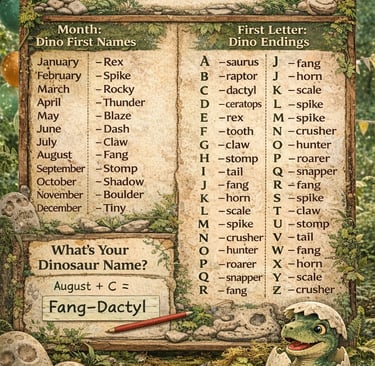 Optional Dino Fun: Once all guests have their Dino Names, formally introduce each Dino aloud. Call out their dino name and invite them to step forward into the circle.