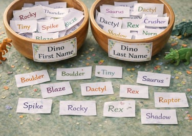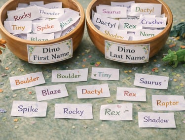 A fun opening activity where each guest creates a playful dinosaur name to use during the party.