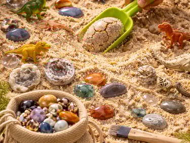 Paleontologists dig through the sand to uncover dino eggs, shark teeth, fossils and other prehistoric treasures.