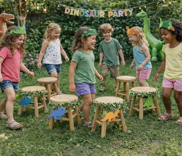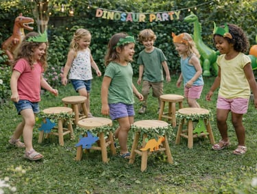 A prehistoric twist on musical chairs where kids race to grab a dino seat with the music stops.