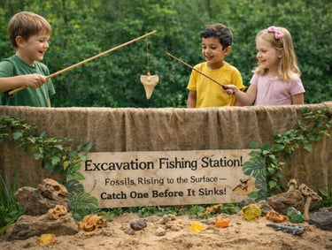Kids cast their line into the excavation pond and reel in a fun prehistoric prize.