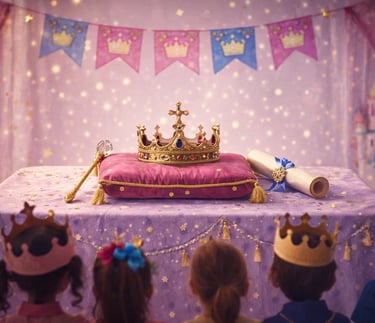 A ceremony where each guest is crowned and welcomed into the royal court.