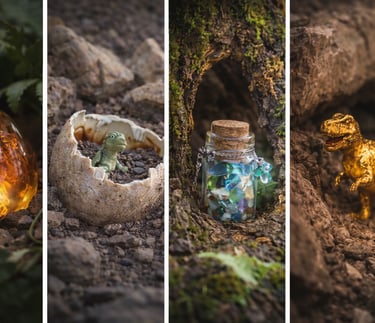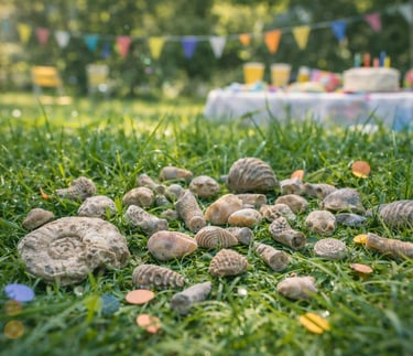 Dinosaur treasures are hidden around the party area so kids can search anytime during the party for a fun, ongoing prehistoric adventure.
