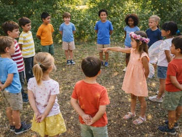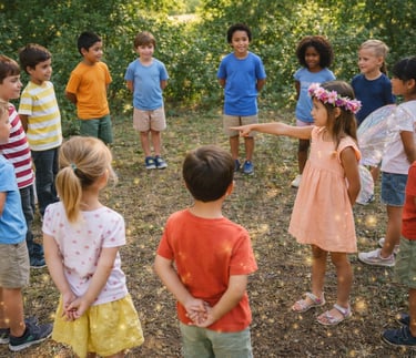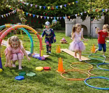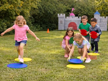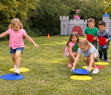 A fun fairy relay where kids hop across stepping stone, with both teamwork and strategy versions for different age groups.