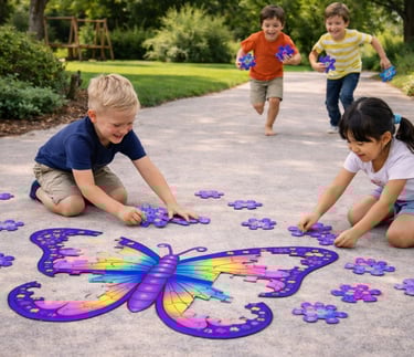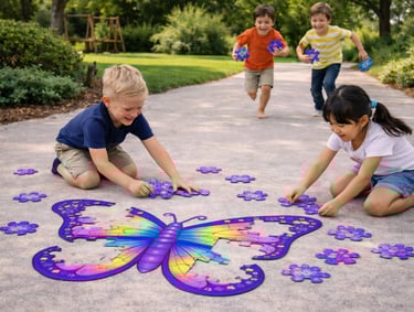 A fast-paced fairy relay race where children run to match wing halves to rebuild the magical wings