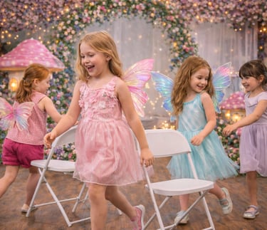 A fairyl twist on musical chairs where fairies s race to claim a seat when the music stops