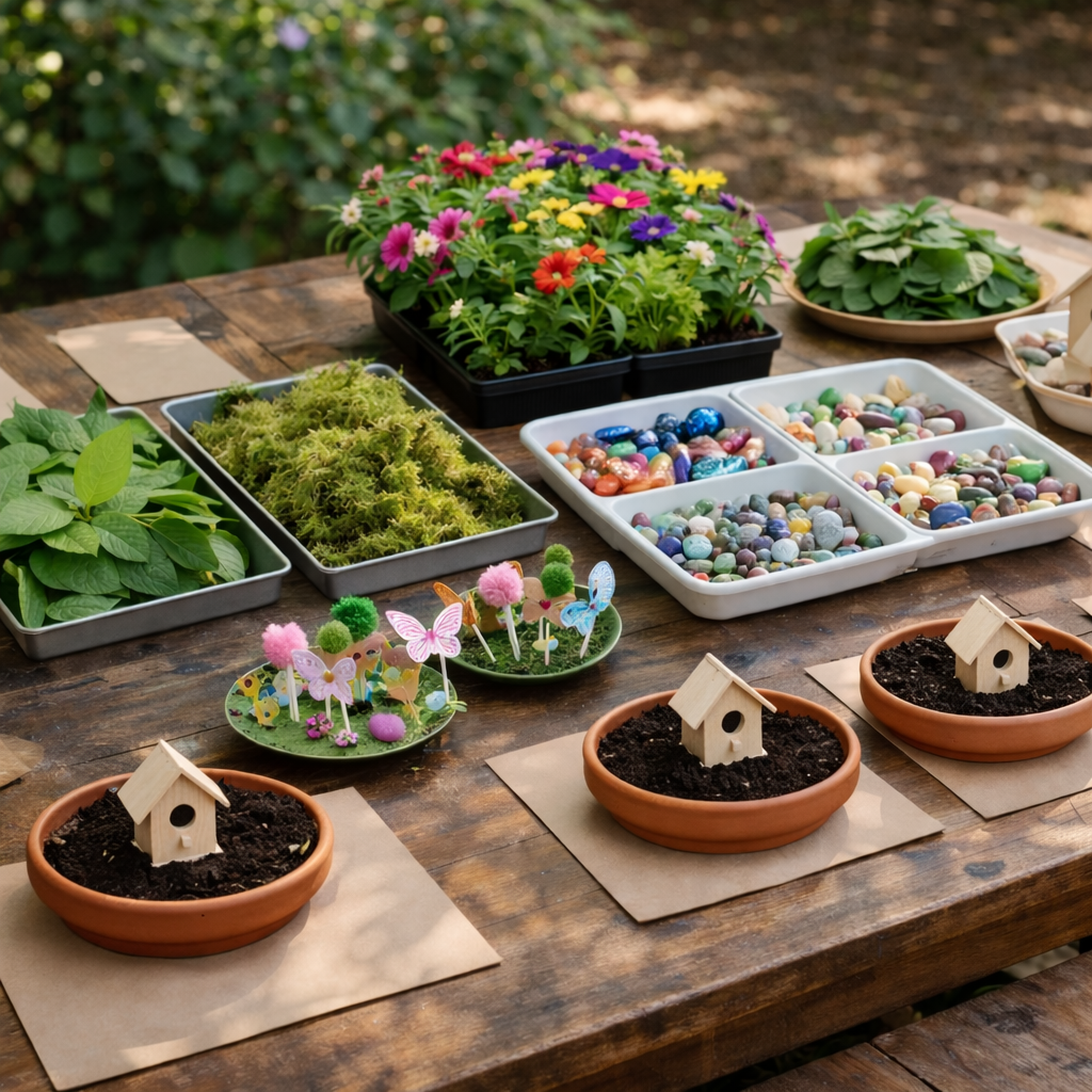 Create a magical fairy garden with moss, mini houses, and tiny treasures-an enchanting hands-on craft that sparks creativity and doubles as a take-home party keepsake.