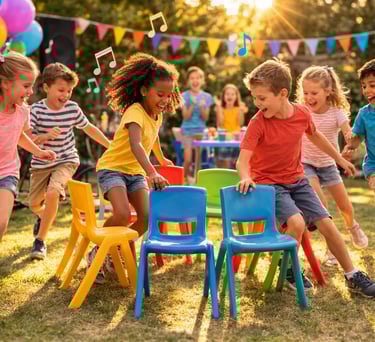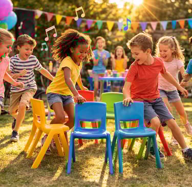 Musical Thrones is a princess party version of the classic musical chairs game. Children walk around royal "thrones" while music plays, and when the music stops they must quickly find a seat. Each round removes one throne until the final princess claims the royal seat.