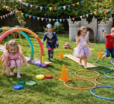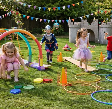 Obstacle courses are one of the most flexible and fun activities you can include at a royal or fairy-themed party. You can create your course using items you already have around the house, purchase a few simple supplies, or mix both together. Hoops, baskets, cones, chalk, pillows, and tape can all become part of the adventure.