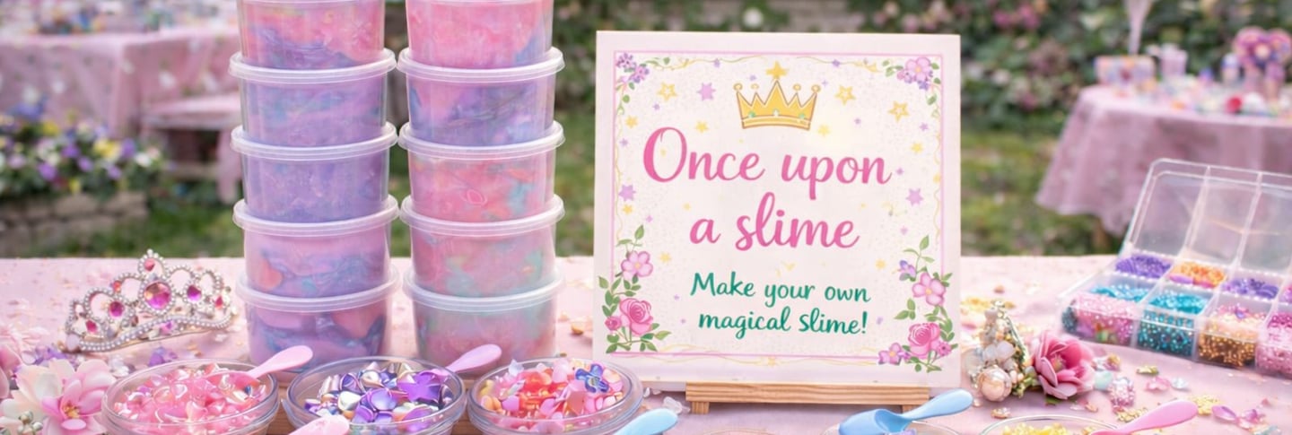 Even a princess can't pass up a slime bar. A Royal Slime Bar is a magical princess party activity where kids create princess slime. Guests customize their slime with colorful add-ins and leave with a squishy, sparkly royal create.
