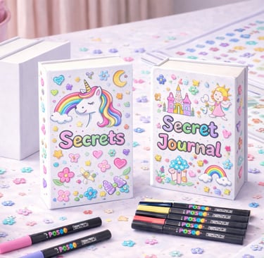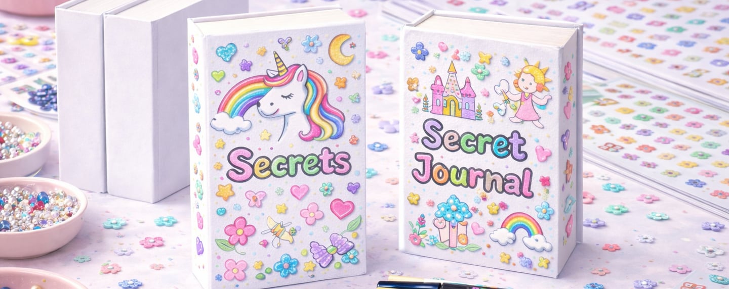 An enchanted treasure book decorating station is a magical craft activity for princess parties, fairy parties, enchanted garden celebrations, wizard or mystery parties. Kids decorate a secret treasure book that looks like a real storybook but opens to a hidden compartment inside-perfect for storing small keepsakes, jewelry or magic treasures.