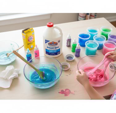 • Test batch first - contact solution brands vary in strength • Have extra activator (contact solution) on hand for adjustments • Provide wet wipes - essential for cleanup! • Pre-portion mix-ins in small cups to control amounts